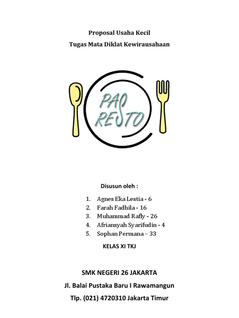 Jan 15, 2020 · contoh proposal / bisnis plan / rancangan usaha.
